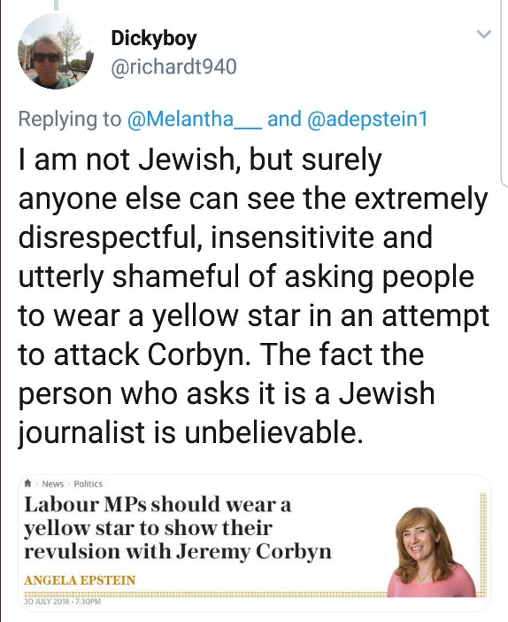 From unofficial Labour spokespeople and media like Aaron Bastani and Kerry Anne-Mendoza to common garden Labour supporting racists, many have claimed a jewish relative or loved one in a bid to to prevent their racist comments from being criticised. It is simply a tactic to bait Jews without consequences. And it has become normalised