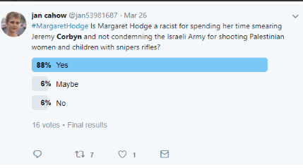Her first post was to retweet a notorious antisemitism promoting author.  She spent the rest of her time denying Labour’s antisemitism issue and demonising those speaking out about it. When challenged after four days of this, she miraculously found her Judaism. However, she repeatedly spelt Rabbi incorrectly.