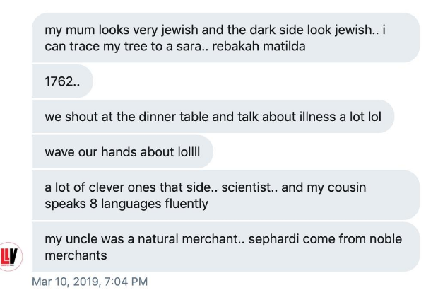 jew face‘, is not just claiming a Jewish relative or appropriating a culture. It’s stealing our religious and cultural identity to weaponise it against us and abuse us.